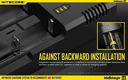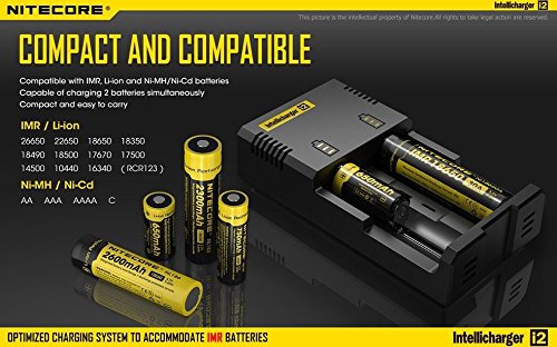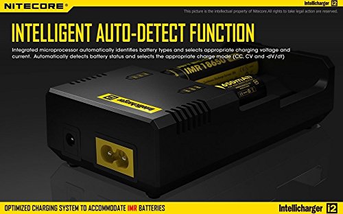 -. Feature : newest generation of nit core i2 released in 2014 / charging 2 battery simultaneously, each slot monitors and charges independently. / Compatible with and identifies Li-ion (26650, 22650, 18650, 17670, 18490, 17500, 18350, 16340(RCR123), 14500, 10440), Ni-MH and Ni-Cd (AA, AAA, AAAA, C) rechargeable batteries Optimized charging design for IMR batteries / Automatically detects battery status and selects the approP.R.Iate voltage and charge mode / Bundle Come with bonus Car Charger Adapter