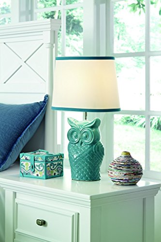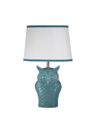 -. Feature : Dimensions: 12.87W x 8.87D x 20.75H in. / Shade dimensions: 13W x 9D x 9H in. / Blue finish / White and blue fabric oval shade / On/off switch