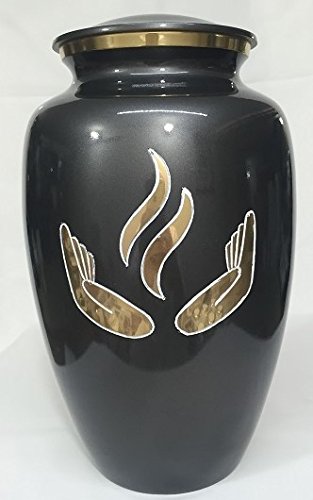 Cremation Urn - Hands of Prayer Funeral Urn for Human Ashes - Large Adult Size Burial Urn - 100% Brass (Black-Gold)