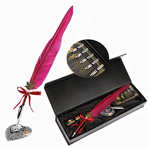 -. Feature : Comes with 5 extra calligraphy nibs,1 goose feather pen,1 10ml ink pot(Without Ink) and 1 Relief Pen Holder. Perfect to meet the different need in your calligraphy English writing. / Mix of stainless steel and iridium alloy to prevent rust and ensure durability. Elegant in appearance, loyal to the spirit of ancient European in making pens. / Easy to use and write beautifully, can be an English practicing writing quill / English calligraphy pen. Please make sure that the ink dip is no more than the half of nib when use. / Exquisite packing, a popular luxury gift for your families and friends in Christmas, Thanksgivng Day, birthday and so on. / Please Note: Due to some Restrictions of Aviation Regulation, the ink in the box have to be discarded, we are so sorry that you will receive an empty ink pot.