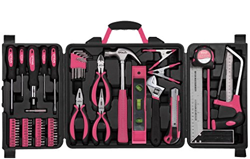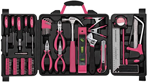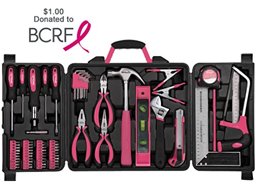 Apollo Tools DT0204P 71 Piece Household Tool Kit with Most Reached for Hand Tools in Storage Case Pink Ribbon