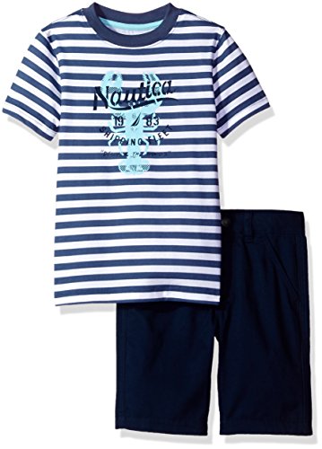 Nautica Little Boys' Graphic Tee and Twill Short Two Piece Set, Ink, Small (4)