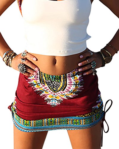 -. Title : Pxmoda Womens African Dashiki Skirt Boho Ethnic Short Beach Skirt