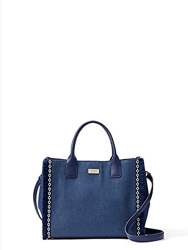 Color :Oceanic Blue 8.8"h x 12.4"w x 5.5"d drop length: 14.1" total adjustable strap length: 33". Classic denim wash with matte pebbled leather trim capital kate jacquard lining Gold plated hardware style # wkru5455. Satchel with snap tab closure removable and adjustable crossbody strap interior zipper and dual slide pockets gold staple kate spade new york signature dusdjustable crossbody strap interior zipper and dual slide pockets gold staple kate spade new york signature dust bag not included