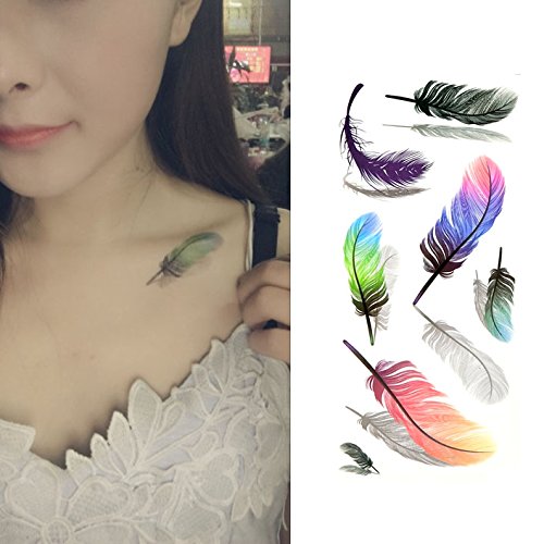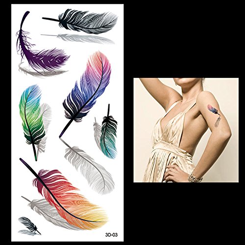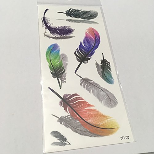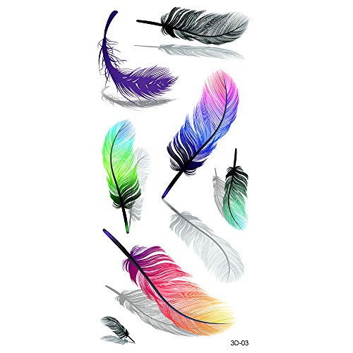 Oottati 3D Assorted - Colorful Fluttering Feather Reflection Temporary Tattoo
