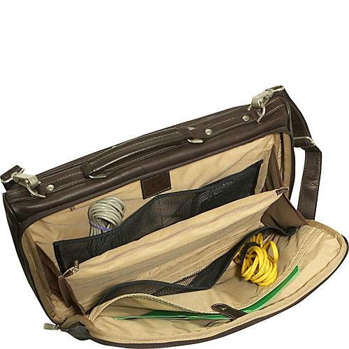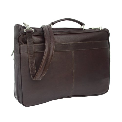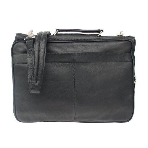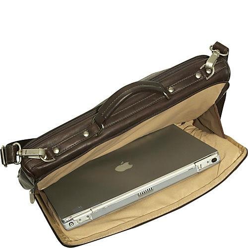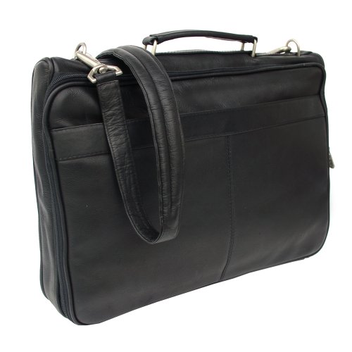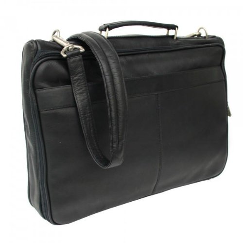 Studio : Piel Leather Publisher : Piel Leather Binding : Apparel Product Description Two zippered main compartments. One padded for a laptop (16 inch x 11.5 inch x 2 inch) and the other with multiple open pockets for files, a large zip-pocket, and center zip-pocket. Front zip-pocket with full organizer and back open pocket. Top handle for easy carrying and an adjustable/detachable shoulder strap. 0