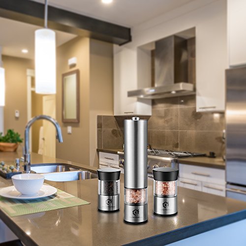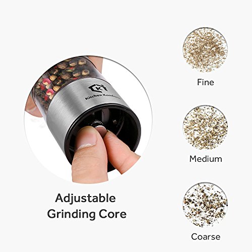 Electric Salt and Pepper Grinder Set, Kitchen Komforts 3 In 1 Salt and Pepper Grinder Mill Set Stainless Steel Battery Operated Pepper Shaker with Adjustable Ceramic Grinder