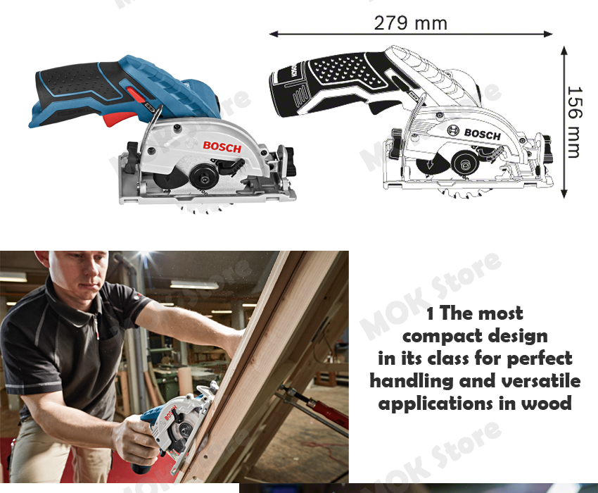 - Best power-to-weight/size ratio: Fastest cutting progress, max cutting depth value for the most compact, light weight 10,8 professional circular saw