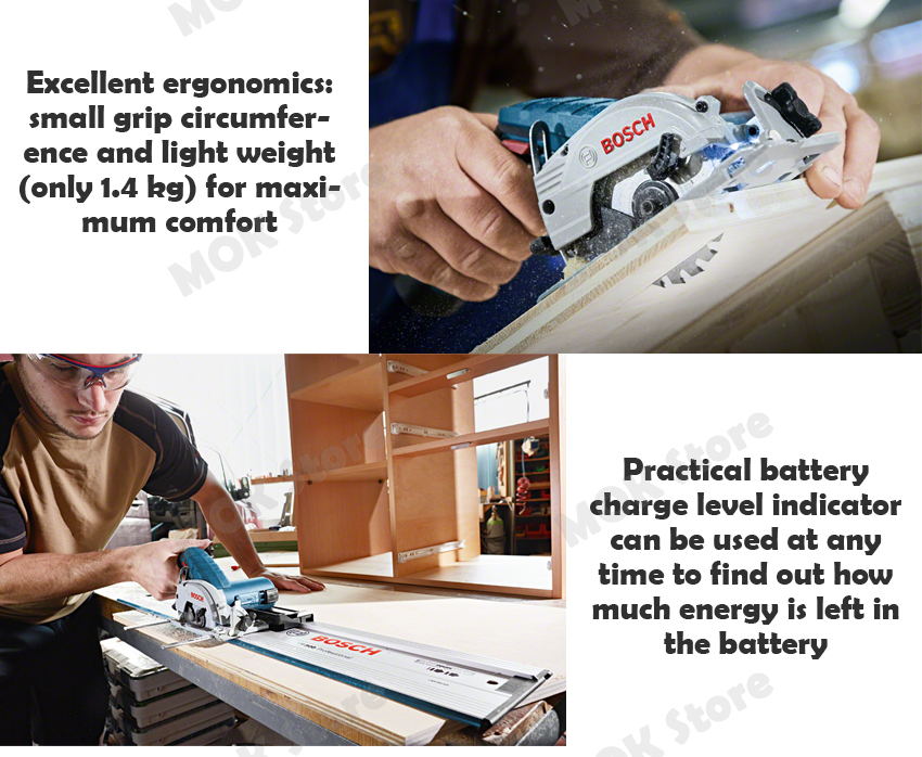 - Great handling: Lowest weight and compact size in the professional cordless circular saw market with low width and wall projection