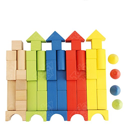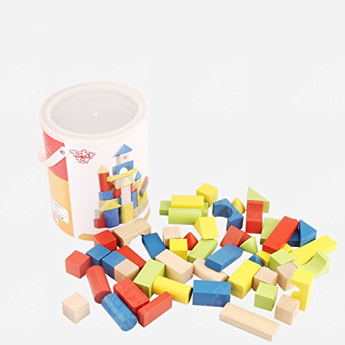 -. Feature : 50 pieces colored blocks, with a barrel for convenient storage.Include cone cuboid cube cylinders and triangle / There are many varieties of shapes and sizes which is perfect for fine tuning his fine motor skills. Child could to stack them and differentiate between size and shape and how they stack and fit together. / To developing imagination and motor skills, and promoting color and recognition in children aged 2+ / These are colored wooden blocks of different shapes and sizes. Rectangles, cubes, cylinders, semi cylinders and scooped in rectangles. / All wood, solid, and beautifully made,Made from sustainable woods, colored with safe paints, and tested to the highest safety testing standards