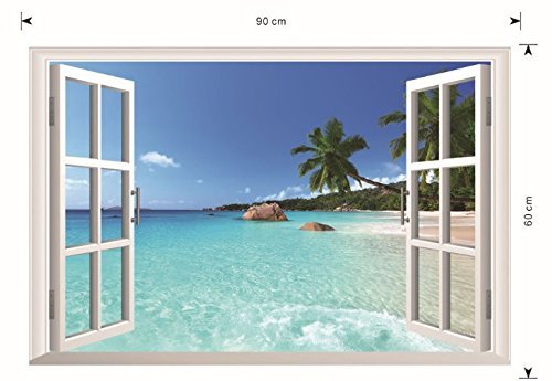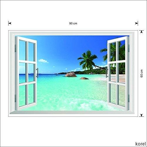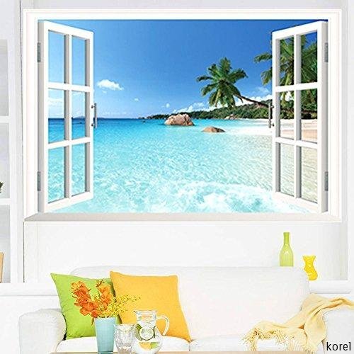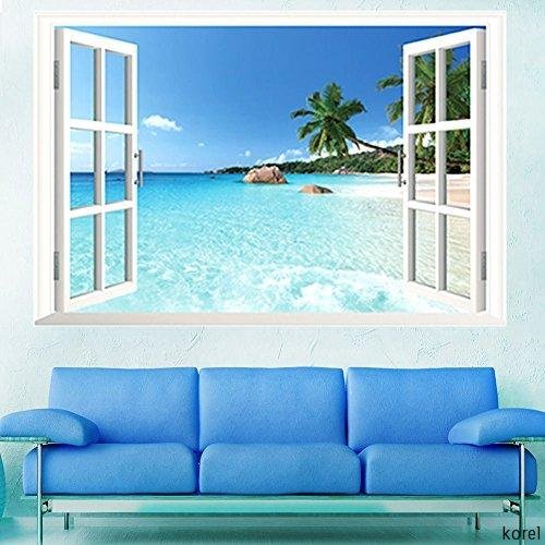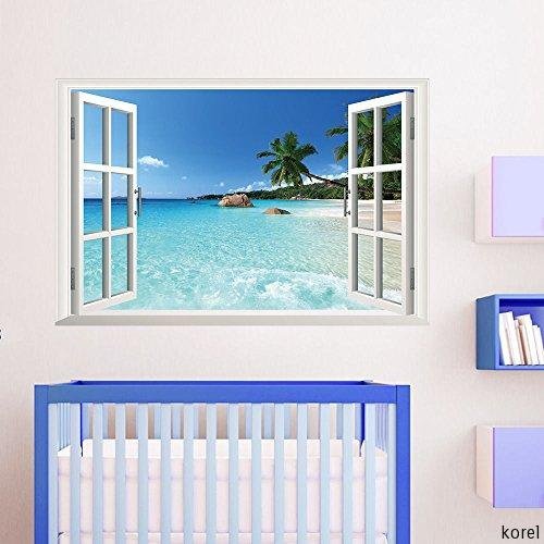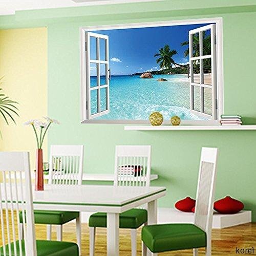 KOREL® Large Removable Beach Sea 3D Window Decal WALL STICKER Home Decor Exotic Beach View Art Wallpaper Mural