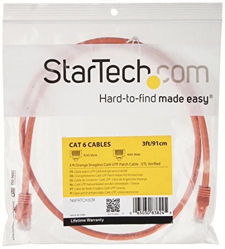 StarTech.com Cat6 Ethernet Cable - 3 ft - Orange - Patch Cable - Snagless Cat5 Cable - Short Network Cable - Ethernet Cord - Cat 6 Cable - 3ft