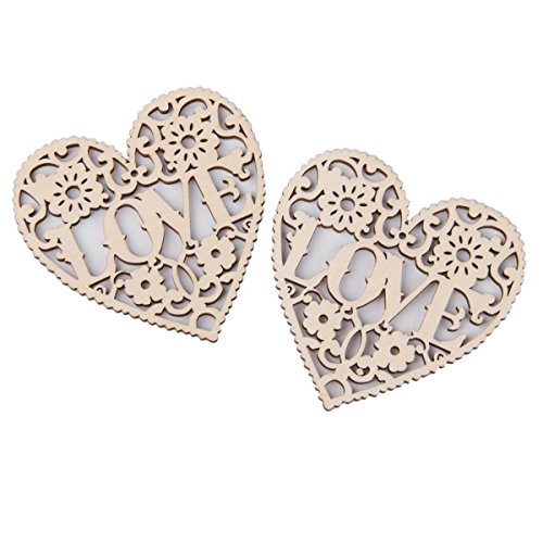 Tinksky Heart Wooden Embellishments Crafts Hanging Ornament for Wedding Valentine's Day gift DIY, Pack of 10