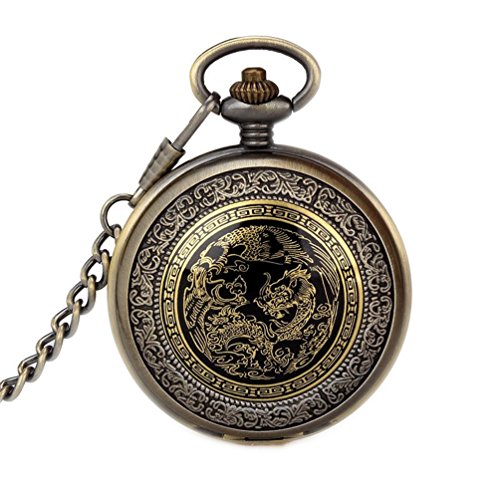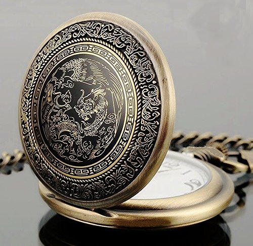 -. Title : REATR Retro Pocket Watch Dragon & Phoenix Quartz Watch with Gift Box for Christmas