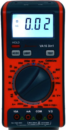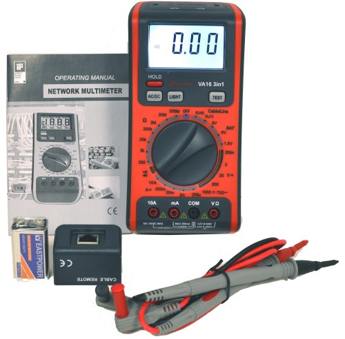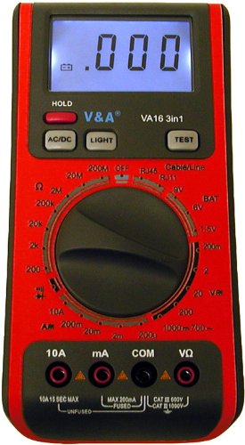 V&A VA16 3-in-1 Digital Multimeter & Battery Tester Telephone Line RJ11 & RJ45 T168A, T568B Tester & Cable Tester