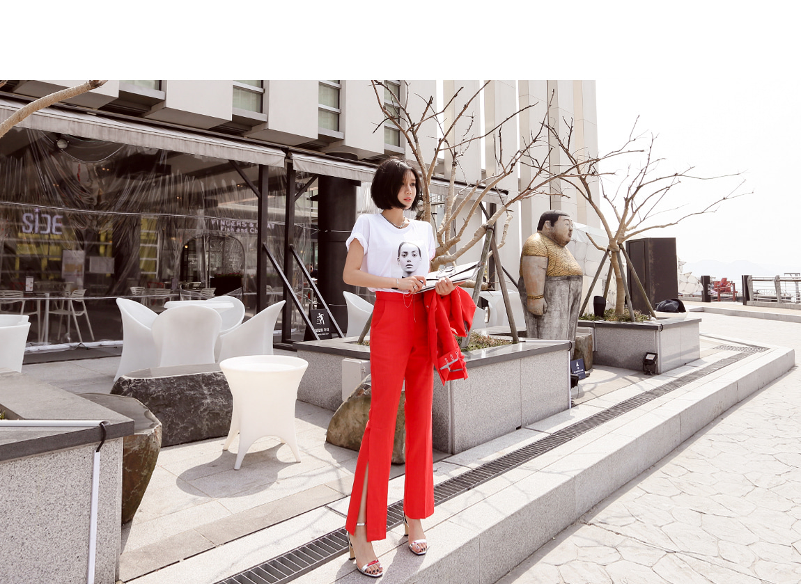 앞면의 프린팅과 체인 디테일로 트렌디한 포인트를 주었어요