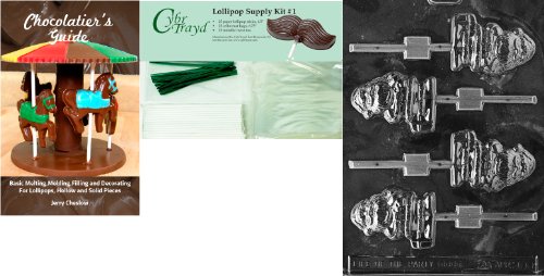 Cybrtrayd Santa with Package Pop Chocolate Mold with Chocolatier's Bundle of 25 Lollipop Sticks, 25 Cello Bags, 25 Green Twist Ties and Chocolatier's Guide