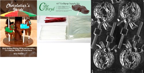 Cybrtrayd 45stK25RBk-C091 Wreath Lolly Chocolate Mold with Chocolatier's Bundle of 25 Lollipop Sticks, 25 Cello Bags, 25 Red Twist Ties and Chocolatier's Guide