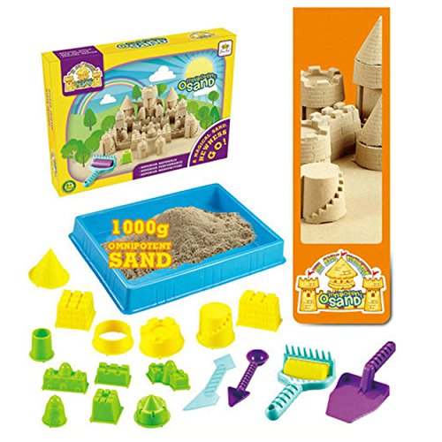 Introducing the " Planet Sand Deluxe Pack 2.2 LB and 17 accessories "!Create your sand kingdom with these addictive planet sand . The possibilities are endless with this set! The Sand is the squeezable, stretchy, squish-able & soft on the hands. This is where you can actually FEEL the fun! You've seen it before, but you've never felt anything like it! Pack it, pull it, shape it and love it. This set of sand is incredible & fun for hours on end. You wont be able to put it down! It sticks to itself and not to you. It flows through your fingers like a slow-moving liquid, but leaves them completely dry. Almost feels identical to cookie dough. The sand stimulates children's creative skills allowing them to create anything they can imagine over and over again. It's a magical and mesmerizing experience, providing relaxation for both young and old. It doesn't dry out and is gluten free, 100% non-toxic and antibacterial. For freshness, pack away after done playing. This soft and stretchy sand easily cleans up while delivering non-stop fun! Doesn't stain and creates no mess-picks up easily off floors and carpets. Can be used again and again. FEEL the fun - Pick your set up today!Feature