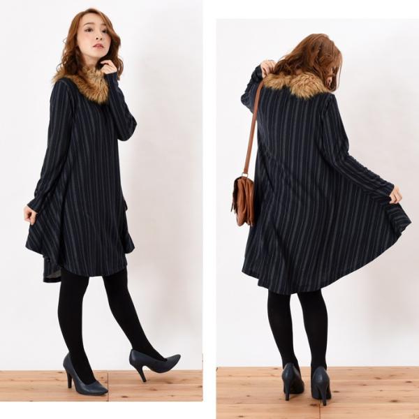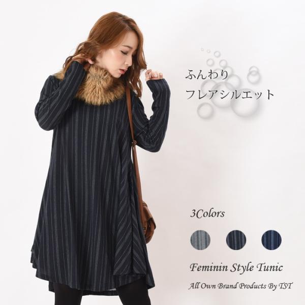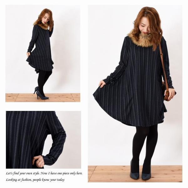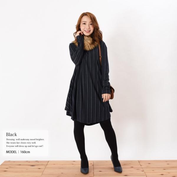 さわり心地柔らかで伸縮性のある天竺素材の起毛のワンピースです。ゆったりとしたフレアに広がす裾が女性らしいシルエットで、幅広い年齢層の方に大人気です♪ゆったりとしたデザインなので、着心地楽ちんで体型カバーもしっかりとできるのでワードローブにお使いいただけます。シンプルかつこなれ感のあるストライプ柄はこれからの時期にピッタリでシンプルなボトムスやアウターと相性抜群です。【サイズ・素材】 画像参照
