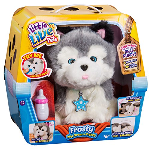 The Little Live Pet Frosty My Dream Puppy makes the perfect first pet! More that just a toy, he moves and feels just like a real puppy! You will fall in love with him the minute he opens up his big blue eyes. Frosty is so lifelike you will truly connect and care for their new pet! Feed him with his bottle! This beautiful little Husky even comes with an adoption certificate so you can truly make him your own!