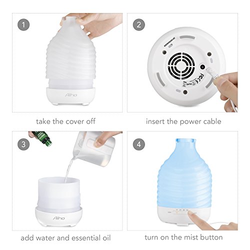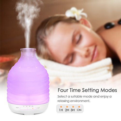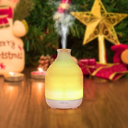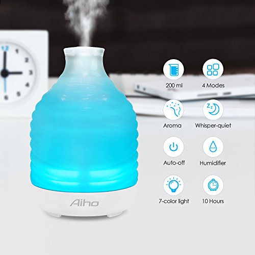 Glass Diffuser Aiho Aromatherapy Essential Oil Diffuser 200ml Aroma Ultrasonic Humidifier with 4 Timer Modes,7 Color LED Waterless Auto Shut-off for...