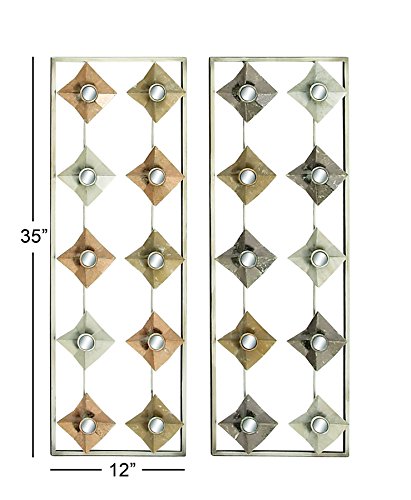 Deco 79 23464 Metal Mirror Wall Panel (2 Assorted), 12"W/35"H