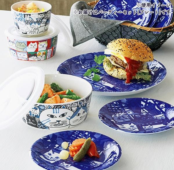 個性豊かで可愛らしい猫たちが描かれた、プレートのセットです。ホームパーティーにピッタリ♪