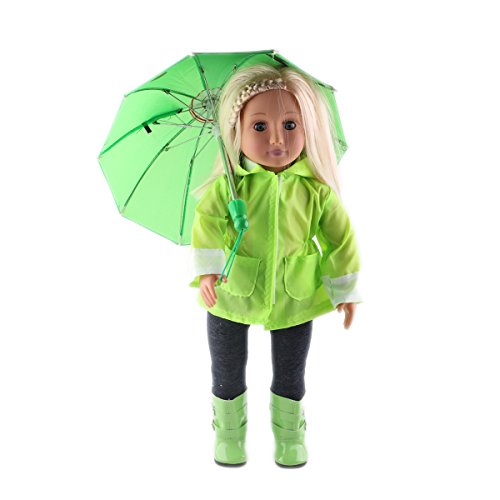 -. Title : ZWSISU Doll Clothes Green Rain Outfits Accessories for 18 inch American Girl Dolls Package Includes Rain Jacket, Umbrella, Boots, Hat, Pants,and Shirt