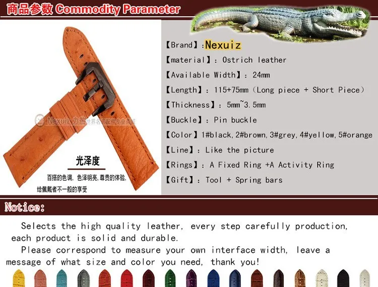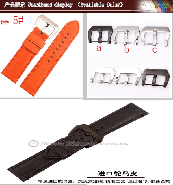 클래식 stype 타조 가죽 손목 스트랩 팔찌 브랜드 Pam111 24 미리메터 오렌지 노란색 블랙 브라운 그레이 프로모션