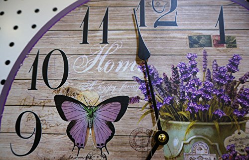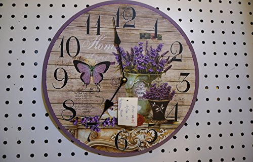Hadaaya gifts & home decor Gorgeous Lavender Designed Decorative Wooden Wall Clock 13 Inch Round, Shabby Chic, Excellent Floral
