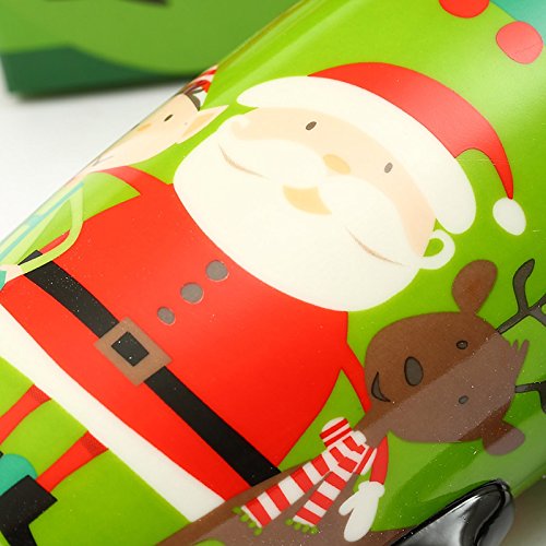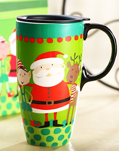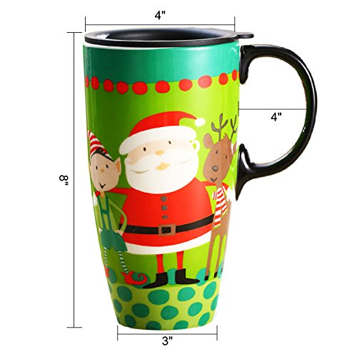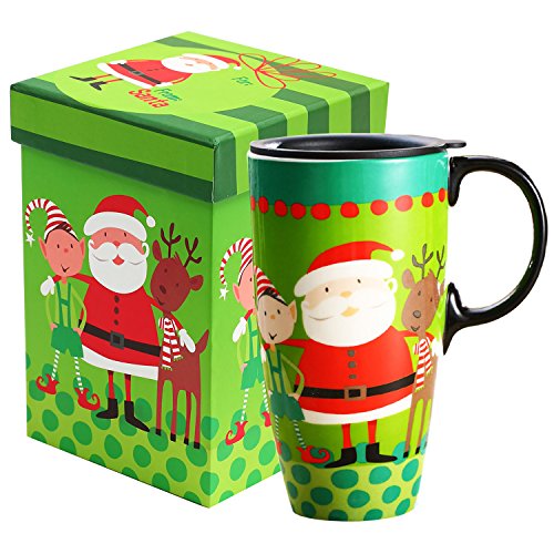 Travel Coffee Ceramic Mug Porcelain Latte Tea Cup With Lid in Gift Box 17oz. Santa by CYPRESS, Green