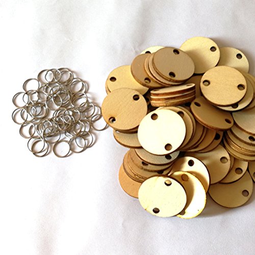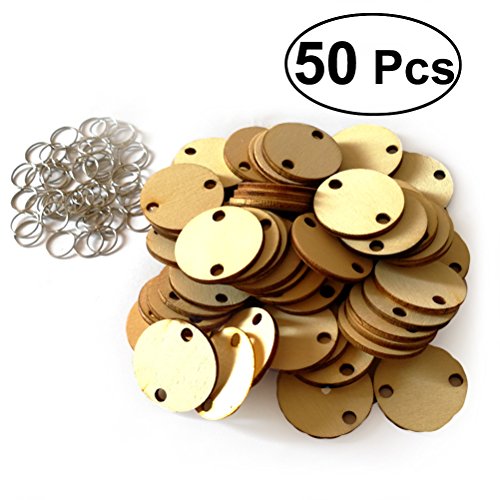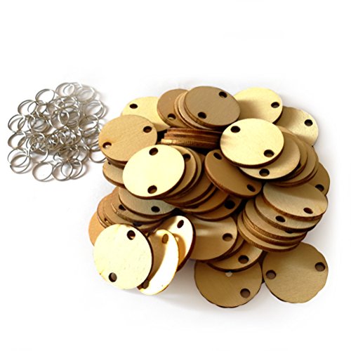 WINOMO 50pcs Round Wooden Slices With 50 Iron Loops Set For Birthday Reminder Hanging Wooden Plaque Board DIY Calendar Accessories Home Decoration (Burlywood)