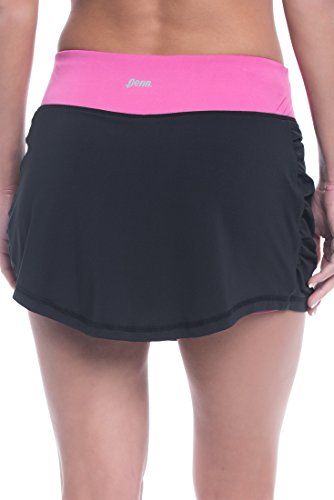 -. Feature : STREAMLINE DESIGN: The skirt and short combo is slightly longer in front and back for full coverage, a little higher on the sides to allow free leg movement. Flatters your leg shape. / LOW RISE: Wide contrasting color waistband, sits low on hips, perfect bot for golf, tennis, running, rugby or casual everyday wear. / PERFORMANCE FABRIC: Penn activewear is made with performance material that wicks away moisture and keeps you cool. Added spandex for movement all means you can stay dry and comfortable during high endurance workouts. / COOL AND COMFORTABLE: Mesh panels allow breath-ability and comfort. Stay dry and comfy during workouts, look great at the gym, on the court, at the store or around the house. / MATERIAL: 88% Polyester/12% Spandex for softness, comfort, breathability and four-way stretch movement - everything you want in your performance sport skorts.