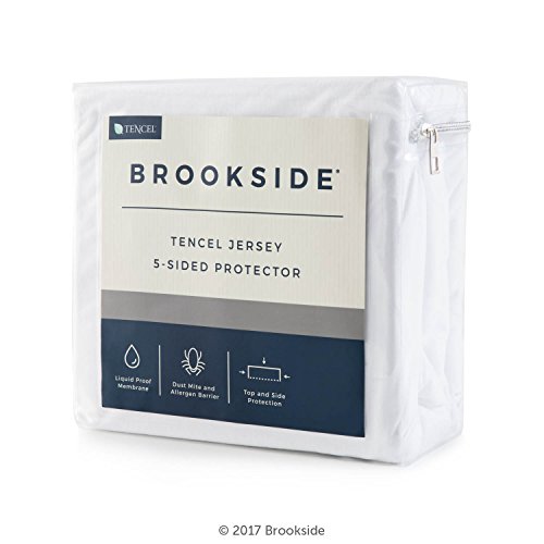 -. Brand : Brookside -. Feature : Protect the top and sides of your mattress from liquids, dust mites, and allergens for a clean sleep surface that is easy to launder / Enjoy breakfast in bed without ruining your mattress, even if you spill thanks to our waterproof barrier that repels all liquids / Our proprietary allergen barrier keeps out dust mites for a clean sleep environment, especially for people with asthma and allergies / This protector is specially designed to fit mattresses up to 18 inches thick; extra-strength bound seams protect edges and corners / TENCEL Jersey blend is luxuriously soft and very quiet; 10-year warranty -. Label : BROOKSIDE -. Manufacturer : BROOKSIDE -. Model : BSTJ5PPARENT -. MPN : BSTJ5PPARENT -. PartNumber : BSTJ5PPARENT -. ProductGroup : Home -. ProductTypeName : HOME_BED_AND_BATH -. Publisher : BROOKSIDE -. Studio : BROOKSIDE -. Title : BROOKSIDE Five Sided TENCEL Jersey Mattress Protector - Soft and Quiet - Hypoallergenic - Waterproof - Repels Allergens and Dust Mites - Extra Strength Bound Seams - 10 Year Warranty -. Warranty : 10-year warranty guards against manufacturer defect.