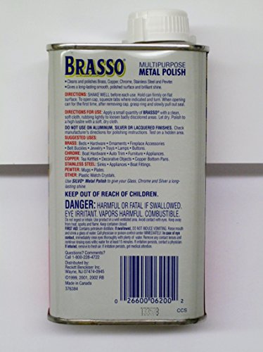 -. Feature : Brasso Multi-Purpose Metal Polish 8 ounce / Cleans and Polishes Brass / Brass, Copper, Chrome, Stainless Steel, Pewter / Not for Aluminum, Silver, or Lacquered finishes / Polished Surface and Brillant Shine