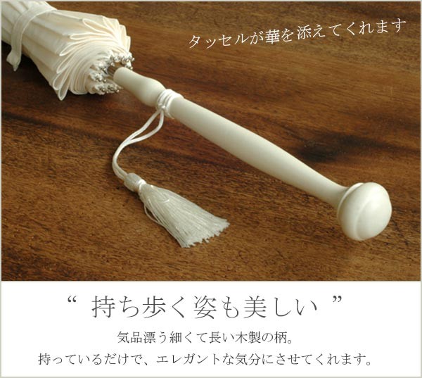 気品漂う細くて長い木製の柄には、マッチするタッセルがあしらわれ、より優雅な印象を与えてくれます。