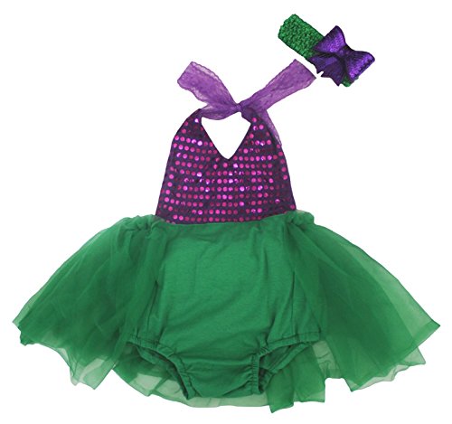 -. Title : Mermaid Costume Purple Sequin Green Cotton Tutu Halter Neck Backless Dress 0-24m