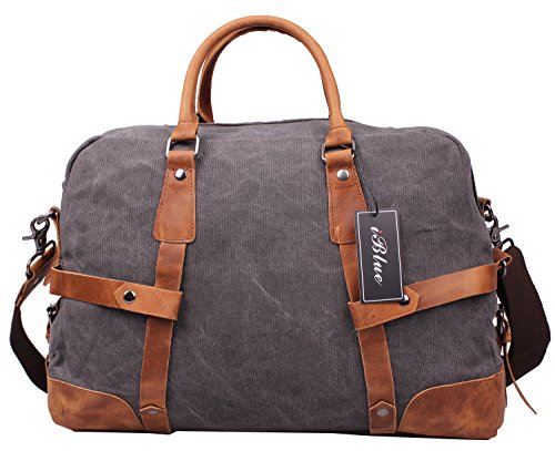 -. Brand : iblue -. Color : light grey -. Department : unisex-adult -. Feature : EXTRA LARGE DUFFLE BAGs FOR MEN AND WOMEN- It adopts top quality Genuine Leather , high density canvas ,very sturdy construction . / GREAT SIZE CANVAS BAG FOR TRAVELING- This bag is a medium to large size, with product dimensions of 21.6''L x 5.1''W x 13.3''H inches. / GREAT CASUAL OUTDOOR SPORTS GEAR BAG FOR MANY ACTIVITIES- Travels, sleepover or even to the gym. / A GREAT CARRY ON GARMENT BAG FOR WEEKEND TRIPS AWAY FROM HOME- It's very spacious and can hold at least 2 - 3 days worth of clothes if necessary. / LARGE CAPACITY DUFFLE BAG- The interior of the bag is simple, but versatile enough to carry a 15in laptop, clothes,sports equipment or everything else you can imagine quite nicely. -. Model : #0235 light grey XL -. PackageQuantity : 1 -. ProductGroup : Apparel -. ProductTypeName : LAGE -. Size : XL -. Title : Iblue Canvas Leather Weekender Bag Large Travel Tote Carry On Handbag 21.6in #0235 (XL, light grey)
