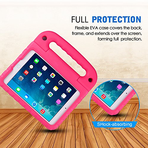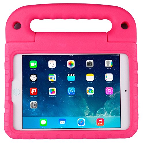 iPad Mini1/2/3 Case-SIMPLEWAY toddler Friendly Light Weight Shock Proof Portable Convertible Stand Handle Case for Apple iPad Mini1/2/3,Rose