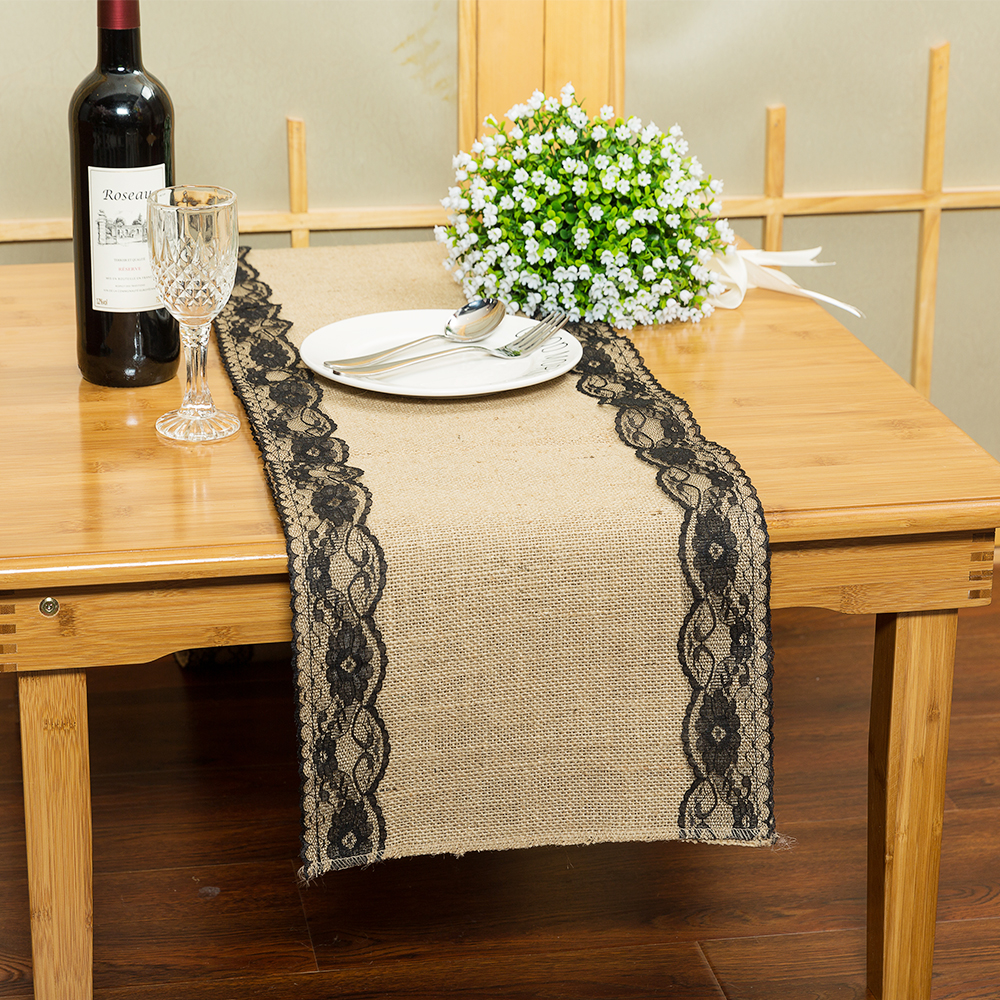 30cm*275cm burlap lace wedding table runner jute burlap table runner for home party Christmas decoration