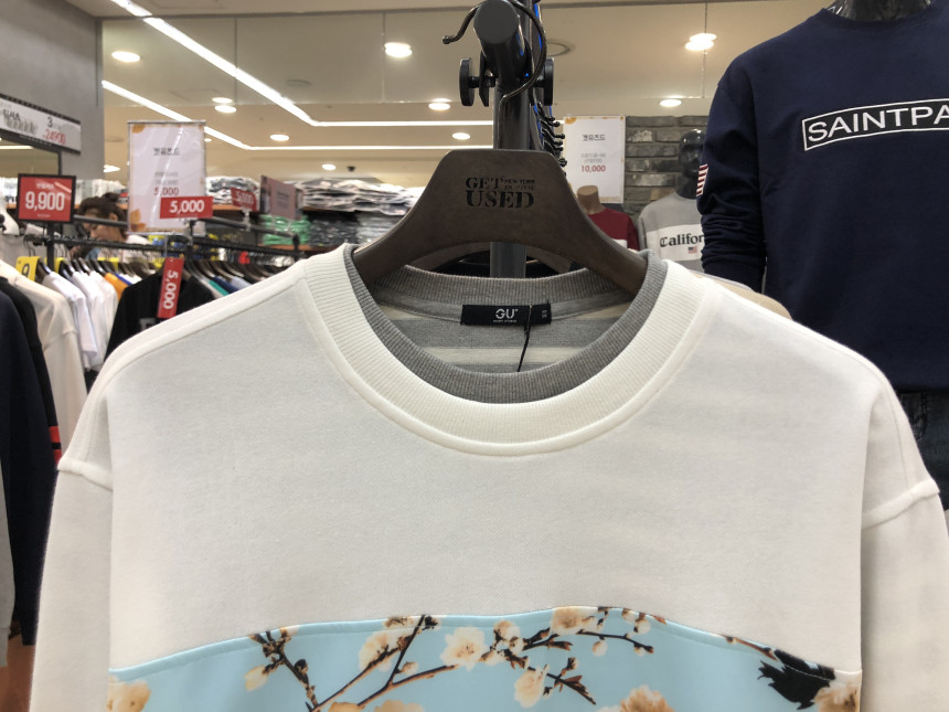 가슴부분에는 벚꽃 무늬 배경에 로고프린트가 들어가 포인트를 주고