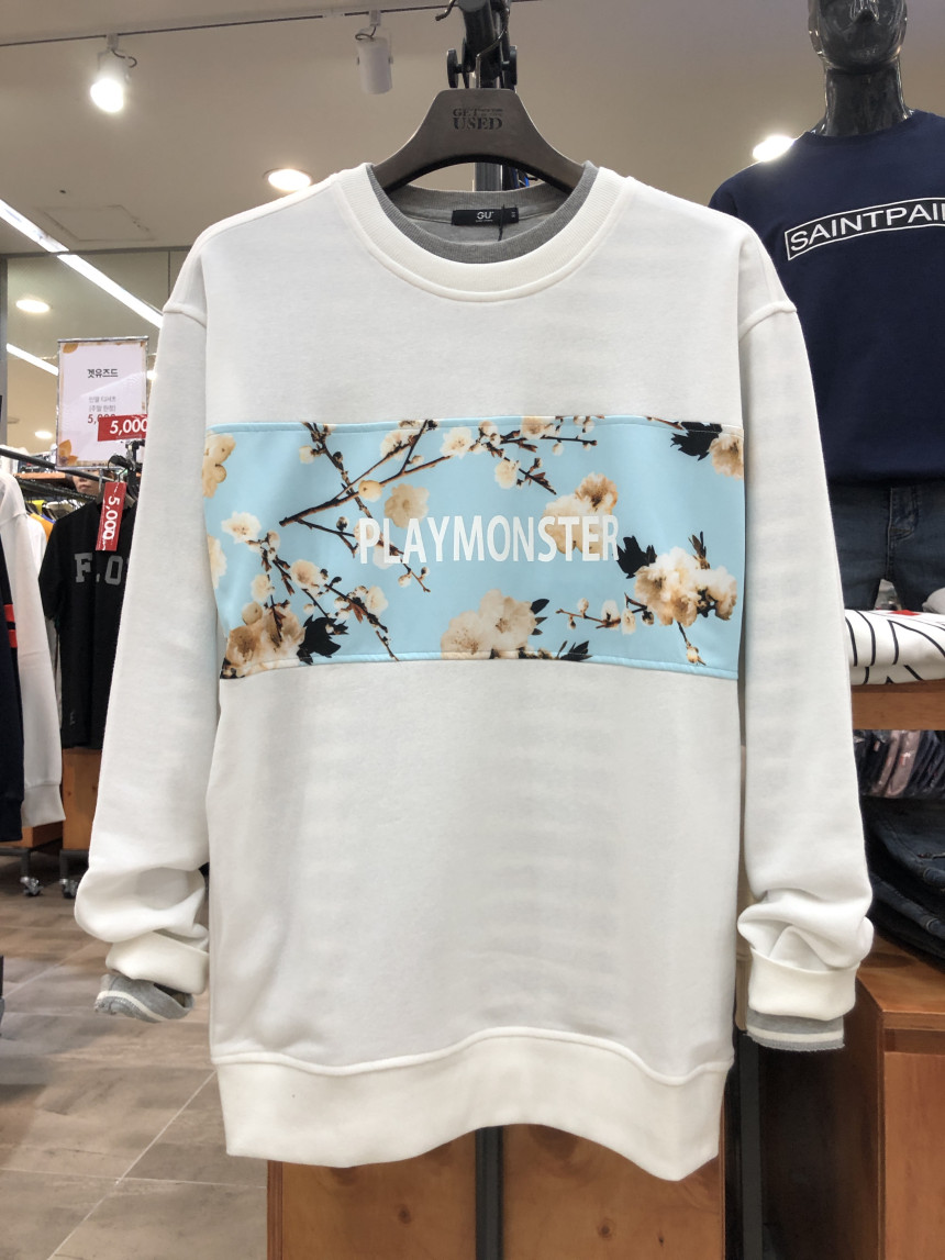 플레이몬스터 벚꽃 프린트 맨투맨입니다~