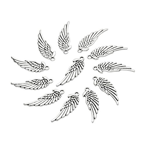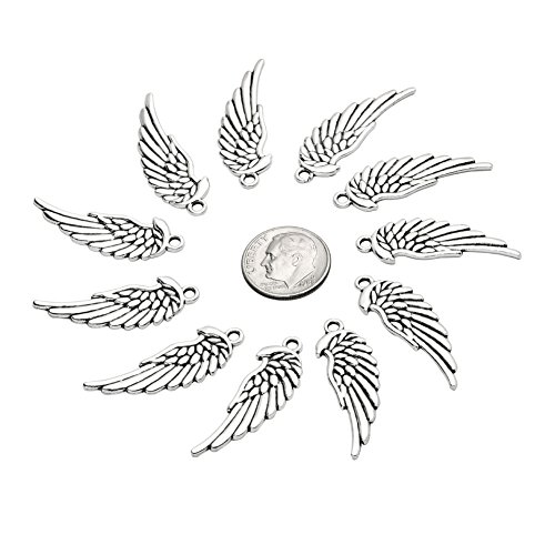 20 Pieces Angel Wings Protection Lucky Charms Findings for Jewelry Pendant Necklace Making 33mm X 11mm