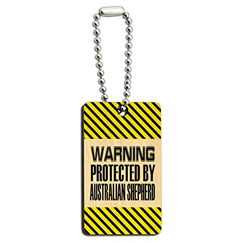 (Graphics and More)/Accessories/Wallets, Money Key Organizers/DIRECT FROM USA/Warning Protected By Australian Shepherd Wood Wooden Rectangle Key Chain