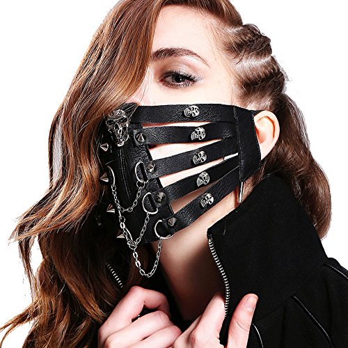 -. Brand : STEELMASTER -. Color : Black -. Department : unisex-adult -. EAN : 0714485964145 -. Feature : Solid black leather simulation and skeleton head bump nail decoration into the hand of effect. / With elastic rope hang on the ear. / High-grade metal chain hanging type +D buttons. / Style:Steampunk,gothic,Holloween / Size:Free -. IsAdultProduct : 0 -. PackageQuantity : 1 -. ProductGroup : Apparel -. ProductTypeName : ADULT_COSTUME -. Size : Free -. Title : Steam Punk Skeleton Mask Goth Halloween Party Rivet Leather Mask -. UPC : 714485964145
