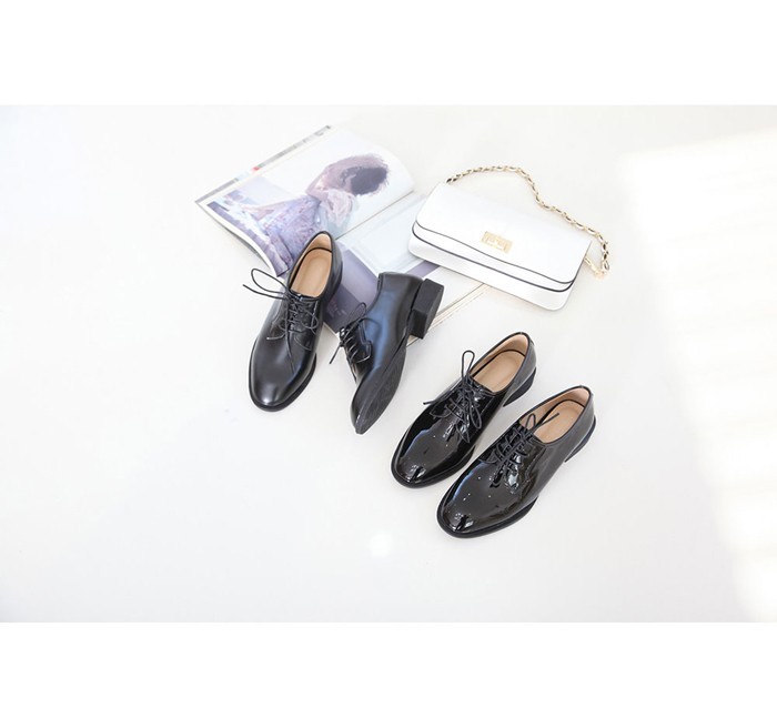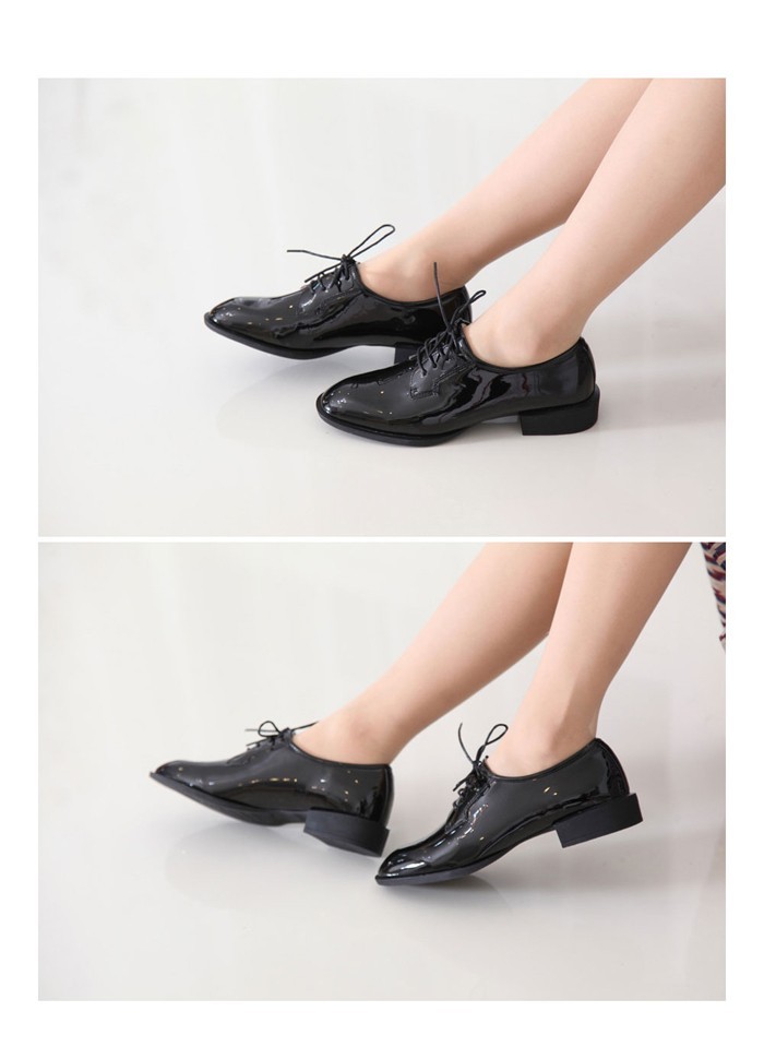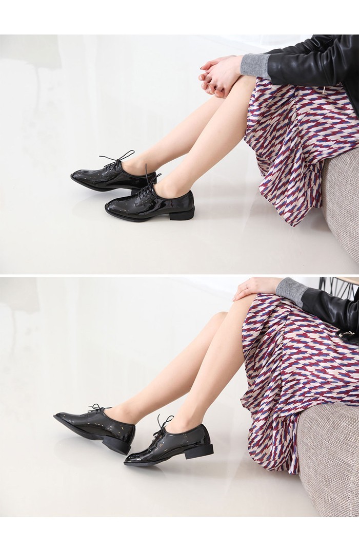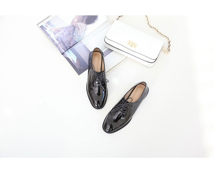 商品名:ローファー レディース マニッシュ エナメル調 レースアップ 2017 秋 冬 ファッション 靴 婦人靴