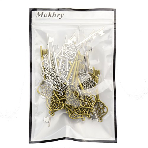 Makhry Mixed 30 Vintage Skeleton Keys Heart-shaped in Antique Style for Wedding Party Favor Decor