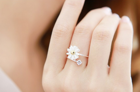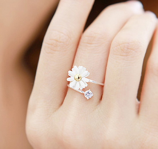 Cincin Cantik Sunflower Kristal Krisan Sunflower Crystal Silver Plated Ring o rings for women Chrysanthemum JEW SJA0846535262 GHJ qty009