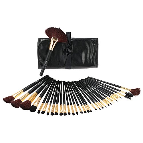 Abody 32Pcs Professional Make Up Brush Set Cosmetic Makeup Tool Kit Fundation Eyeshadow Brushes Lip Powder Eyebrow Brush With Bag (Black+Gold)